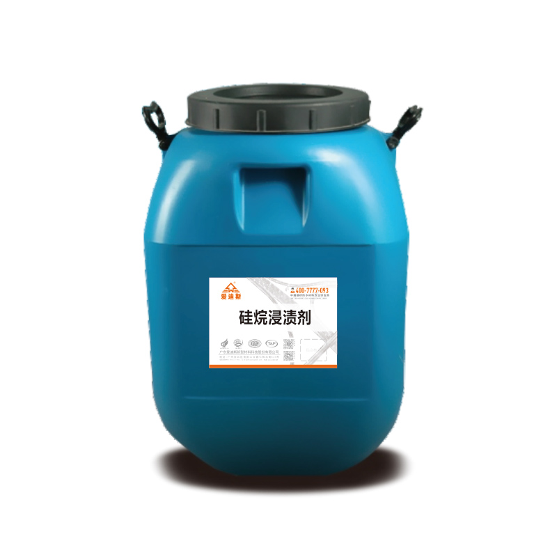 硅烷浸漬劑與混凝土基材有著良好的親和力,能輕易滲透到混凝土內(nèi)部,硅烷活性成分與暴露在酸性和堿性環(huán)境中的空氣及基底中的水分產(chǎn)生化學(xué)反應(yīng),生成羥基團(tuán)。這些羥基團(tuán)將與基材及其本身產(chǎn)生交聯(lián)、堆積,結(jié)合在.毛細(xì)孔的內(nèi)壁,最終在混凝土的毛細(xì)孔表面形成一層牢固的憎水性有機(jī)硅網(wǎng)絡(luò)保護(hù)層,能夠有效地阻止外部水分和有害物質(zhì)的入侵,并讓內(nèi)部水氣和有害氣體逸出,相當(dāng)于給混凝土穿上了一件防水透氣的隱形防彈衣,從而大大提高混凝土結(jié)構(gòu)的防水性、耐鹽堿性、抗凍融性等特性,延長鋼筋混凝土壽命達(dá)20年以上。